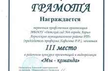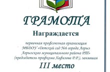 Поздравляем первичную профсоюзную организацию МБДОУ "Детский сад №6 г.Агрыз" (председатель профкома Хафизова Р.Р.), занявшую 3 место в районном конкурсе презентаций и видеороликов "Мы - команда". Молодцы! Так держать!