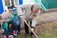 Сегодня, в преддверии празднования Дня Победы в саду прошла церемония высадки деревьев в рамках Международной акции "Сад памяти". Приглашенные гости из Управлегния образования методисты Калимуллина Лейсан Рамилевна и Шамшурин Александр Васильевич с удовольствие участвовали в посадке сирени с детьми. Слова благодарности государственному инспектору в области охраны окружающей среды ГПКЗ "Кичке-Тан" Нуримановой Альфие Нургалиевне за предоставление саженцев.