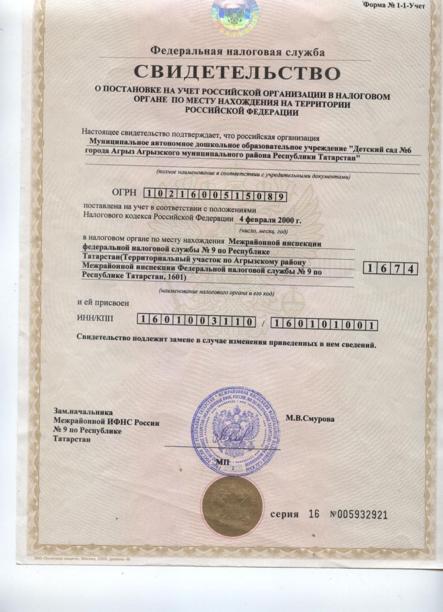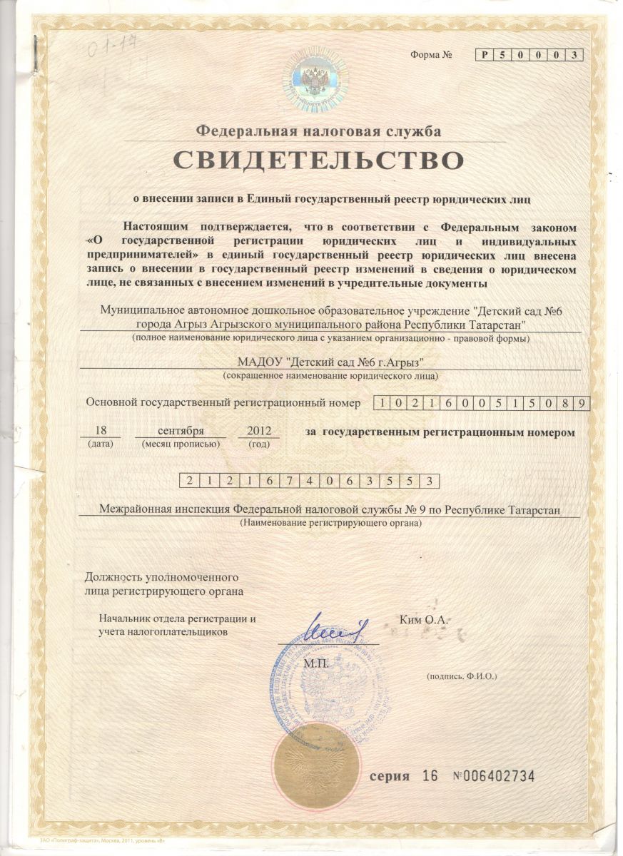 1. Устав МБДОУ "Детский сад №6 г.Агрыз"