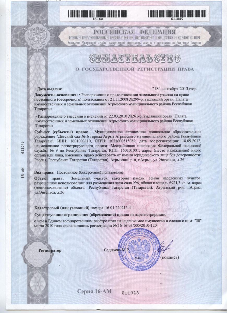 | Короткое название: | МБДОУ «Детский сад №6 г. Агрыз» |