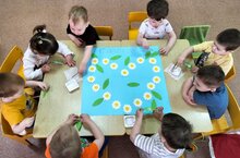 В международный день семьи дети младшей группы N4 на занятие по аппликации смастерили и украсили свою группу плакатом «Ромашковая полянка».