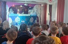 Сегодня наш детский сад наполнился настоящим волшебством! К нам в гости приехали замечательные актёры из театра кукол «Кузнечик». Они привезли с собой удивительную и добрую сказку «Солнышко и снежные человечки».