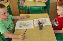 Воспитанники средней группы на занятии закрепили умение аккуратно закрашивать, не выходя за рамки, активизировали в речи слова "Россия", " россияне ", " флаг" (воспитатель: Сидорочева Г. Г.) -