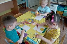 Сегодня дети второй младшей группы N8 сделали аппликацию на тему "Цыплята на лугу".