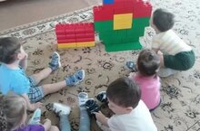 В первой младшей группе N9 мы используем крупные кубики для свободной игры, простых заданий. Комментируя действия детей, мы развиваем их речь. Главное – дать малышам свободу выбора в творчестве.