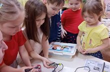 В старшей группе №10 ребята продолжают изучать основы робототехники. Они уже умеют строить модели роботов, подключать их к нетбукам и создавать программы.
