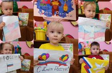 Выставка совместного творчества родителей и детей первой младшей группы №2 «12 июня — День России в детских рисунках».