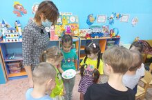 В рамках проведения мероприятий к Декаде инвалидов в нашем саду прошла акция "Доброе сердце" . Дети с воспитателем вручили поделку-игрушку ребёнку с ограниченными возможностями здоровья.