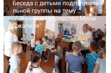 Сегодня в рамках акции, посвящённой памяти татарского поэта Мусы Джалиля с детьми старшей и подготовительной группы была проведена беседа на тему "Жизнь и творчество Муса Джалиля".