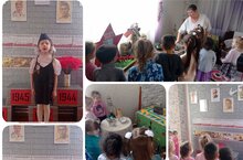 Детям средней группы №1 библиотекарь Закирова Р.Р. рассказала про Великую Отечественную Войну. Она познакомила воспитанников с событиями того сурового времени, рассказала про героизм, проявленный нашими воинами в борьбе с фашистскими захватчиками, что память об этих событиях бессмертна, а подвиг не забыт...