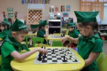 Сеанс одновременной игры шашки в исполнение детей подготовительной группы, младшим сверстникам из старшей группы.