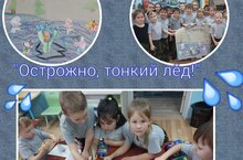 Дети старшей группы изготовили стенгазету "Осторожно, тонкий лёд!".