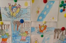 Дети подготовительной группы нарисовали рисунки на тему "Осторожно тонкий лёд".