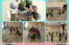 В старших группах прошёл тематический день "День народного единства", целью которого стало формирование патриотического воспитания у детей. Дети закрепили знания о государственных символиках, слушали гимн Российской Федерации. Побеседовали об истории праздника, о том, что в России - нашей Родине - живёт много разных национальностей со своими интересными традициями, рассмотрели национальные костюмы, а так же оформили выставку.