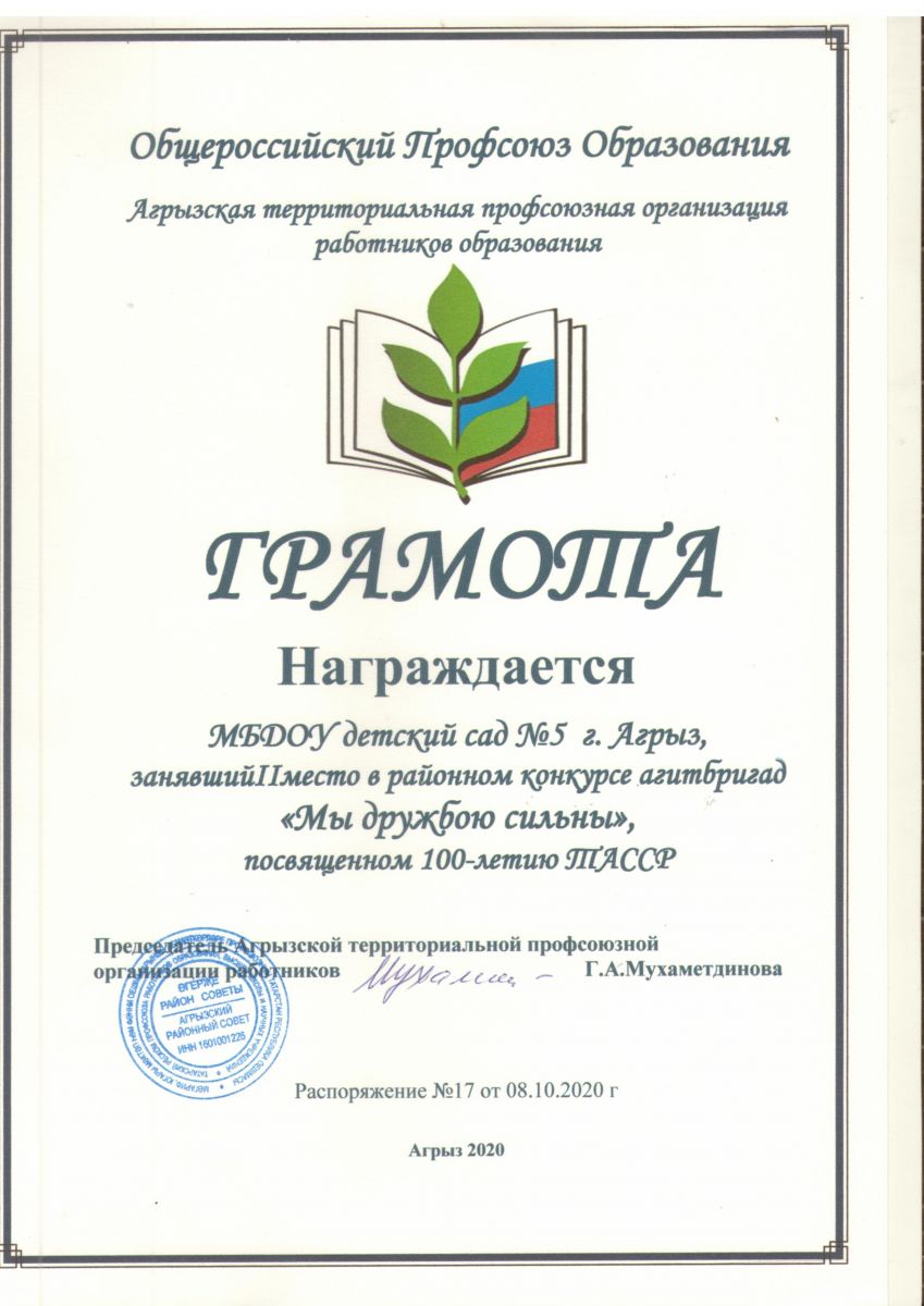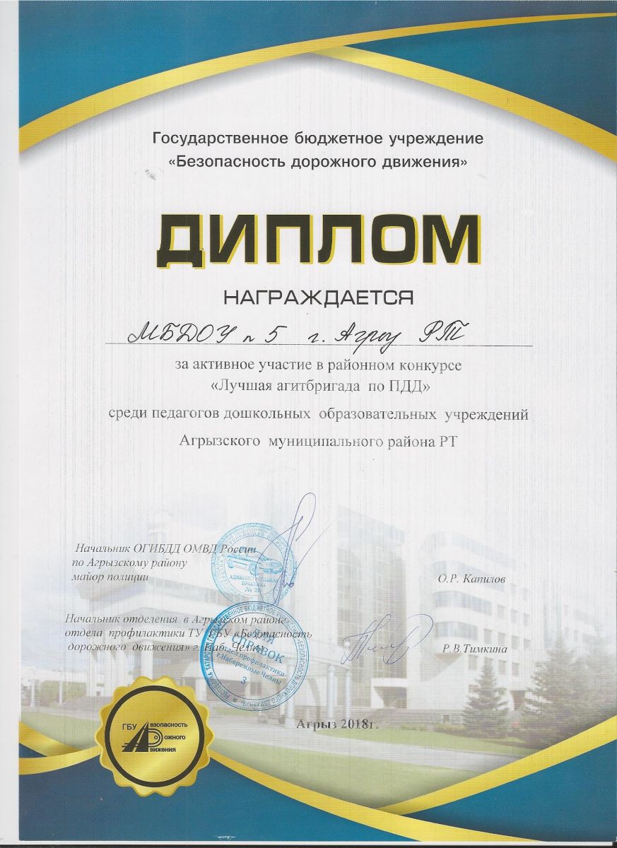 Диплом за участие в районном конкурсе "Лучшая агитбригада", 2018 год.