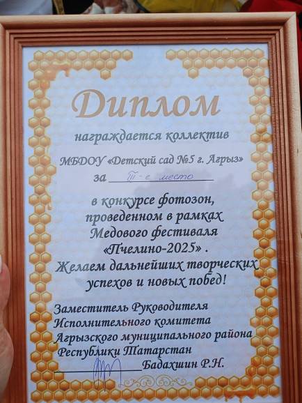 3 место в конкурсе фотозон, проведенном в рамках Медового фестиваля "Пчелино - 2025"