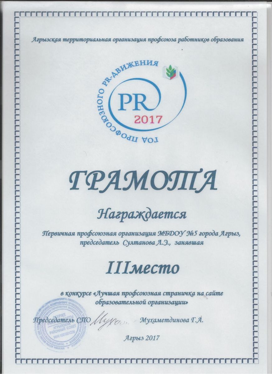 3 место в конкурсе "Лучшая профсоюзная страничка на сайте", 2017 год