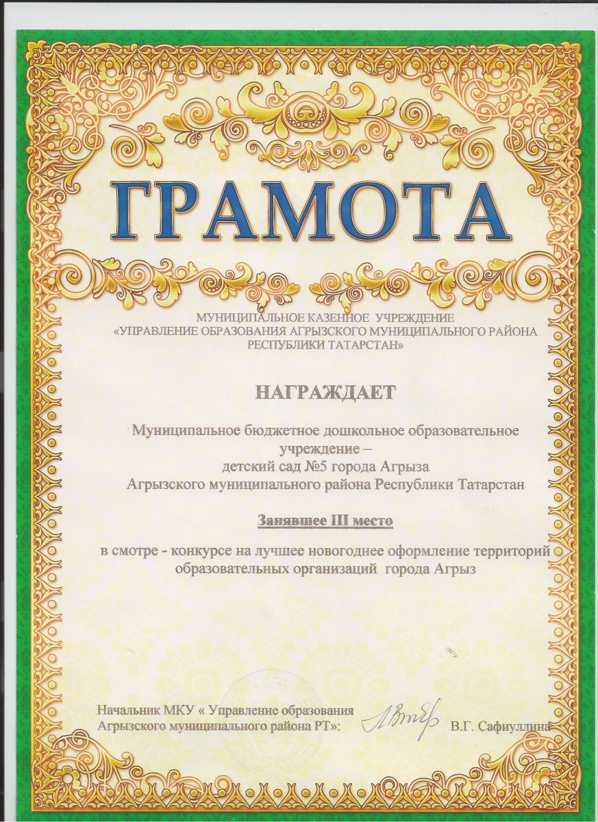 3 место в смотре-конкурсе на лучшее новогоднее оформление.