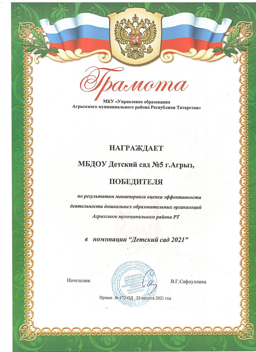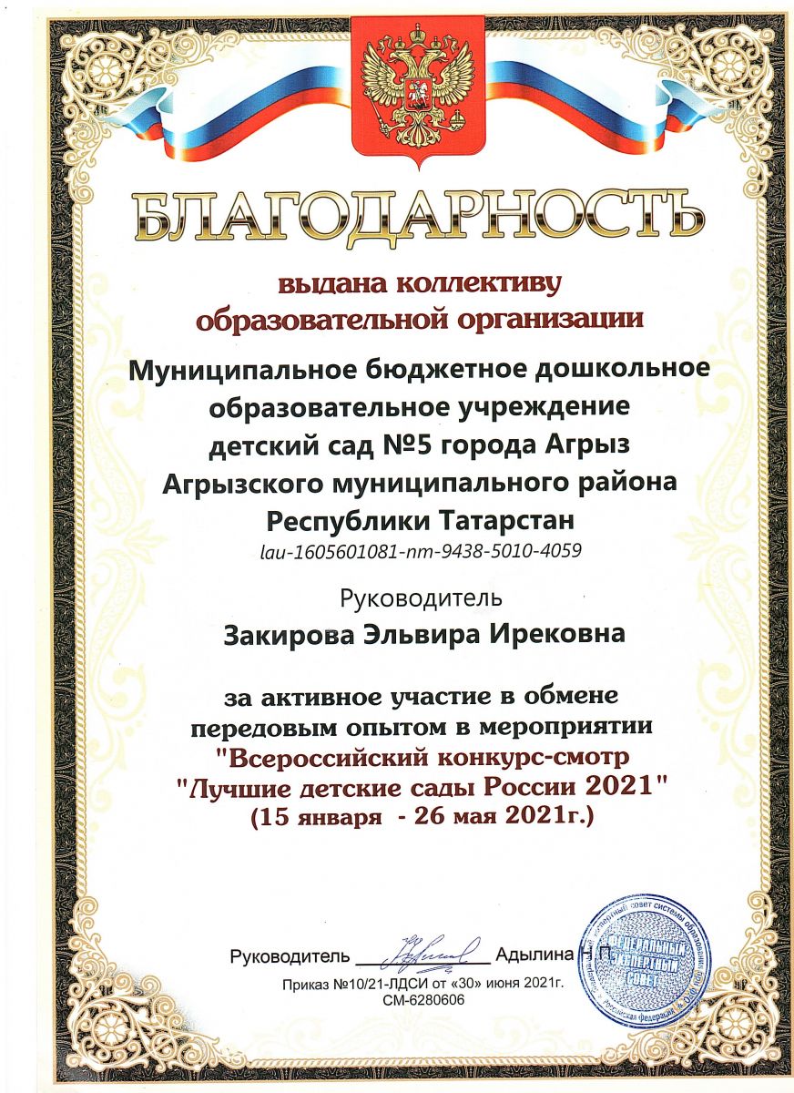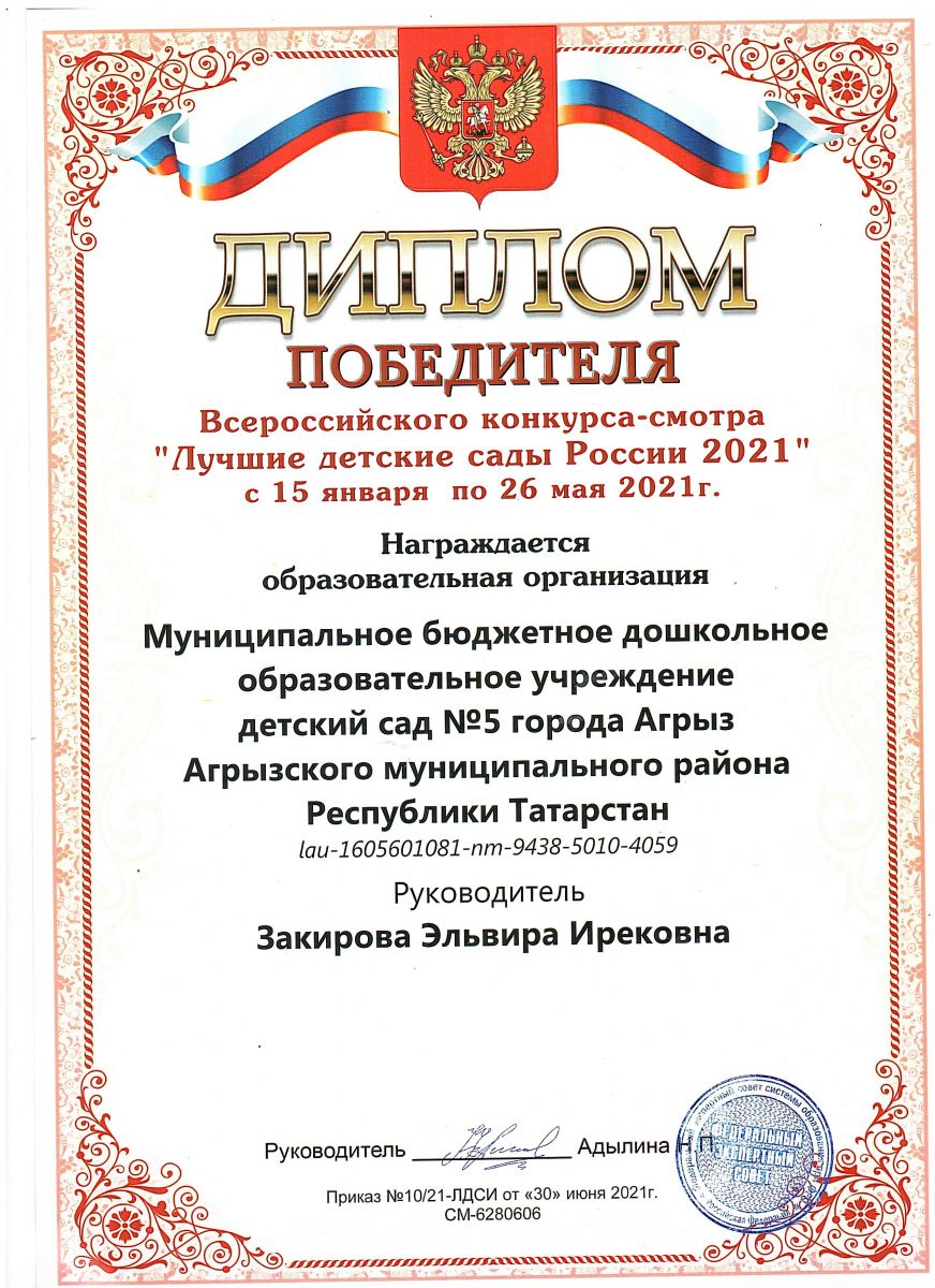 Победитель Всероссийского смотра - конкурса "Лучшие детские сады России 2021"