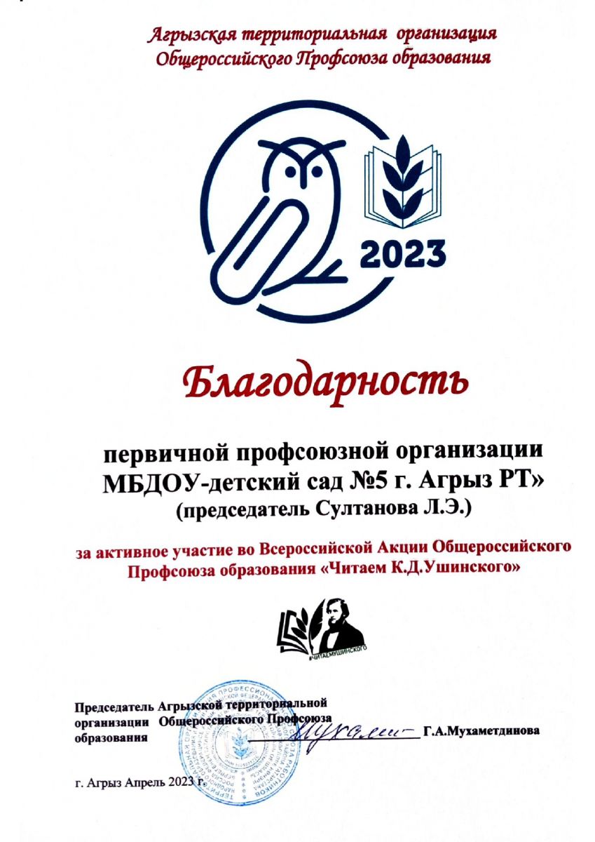 Благодарность коллективу за активное участие в обмене передовым опытом, 2021 г.