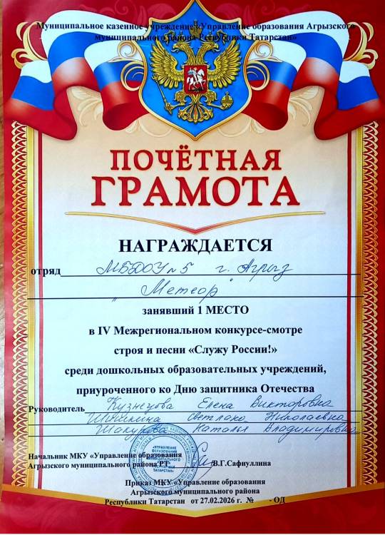 1 место Межрегионального конкурса - смотра строя и песни "Служу России!", 2026 год