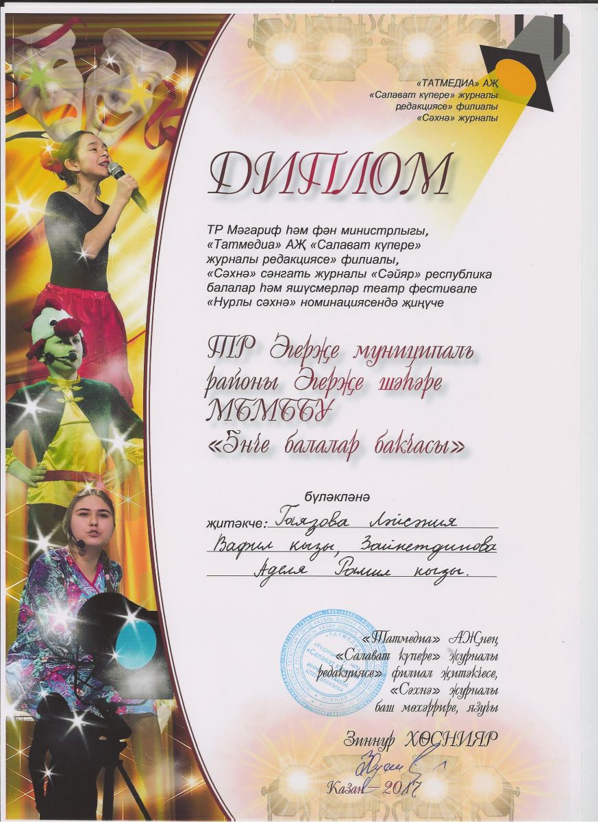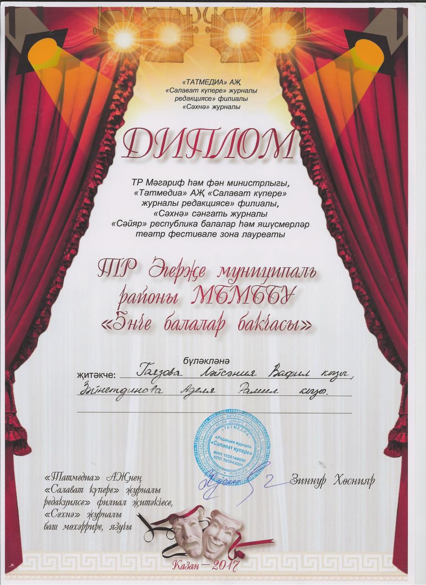 Диплом в номинации "Луч сцены" республиканского конкурса, 2018 год.