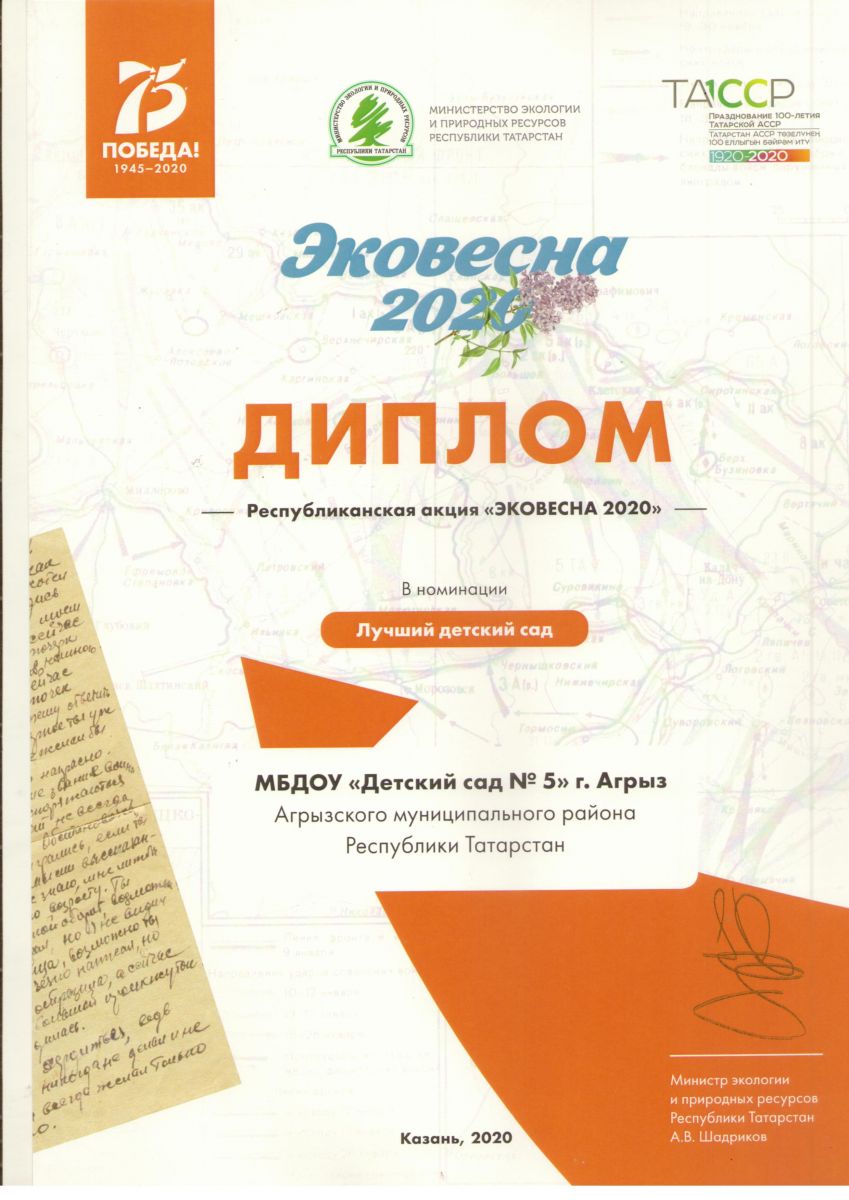 Победитель в номинации "Лучший детский сад" Республиканской акции "Эковесна - 2020"