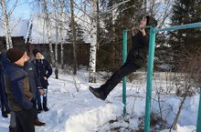 Әнә шулай диләр безнең мәктәпнең кыю, батыр егетләре. Аларны кышкы салкын һава да куркытмый. Бүген егетләребез турникта тартылу буенча көч сынашып, үз командалары хисабын тулыландырдылар. Сынатучылар юк, әлбәттә. Һәркем кулыннан килгәнчә тырыша.