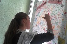 В нашей школе члены совета старшеклассников и члены РДШ начали ежегодную акцию «Поздравь учителя!» Каждый желающий может поздравить любимого учителя, написав поздравление, нарисовав рисунок на плакате. Учащиеся от всей души простыми словами передали свои поздравления. Все пожелания были зачитаны на линейке и доведены до учителей.