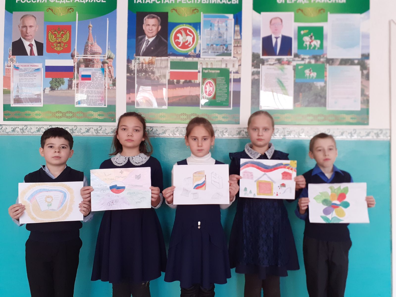 - в младших классах учитель изобразительного искусства Гафарова З.Г. подвела итог школьному конкурсу рисунков на тему: Конституция глазами детей".Лучших наградили грамотами администации школы.