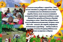 Согласно плана работы в первый день дети начали готовиться к открытию смены. Вместе с воспитателями они подготовили название отрядов, девизы, песни. За тем воспитатели познакомили детей с правилами поведения в лагере. Второй день проходил под девизом «Давайте знакомиться снова». Этот день подарил детям много незабываемых впечатлений. Лагерная смена 2014 года – началась. Все отряды старательно подготовились к празднику - это было видно по визиткам. А весёлая дискотека добавила всем хорошего настроения и общения
