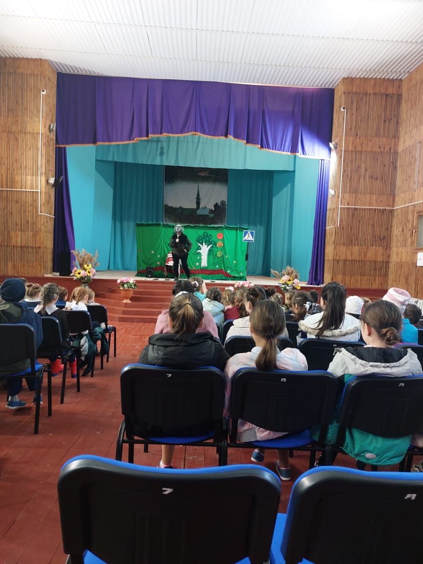 Сегодня учащиеся 5,6,7 классов посетили в Крындинском СК спектакль по правилам дорожного движения в рамках "Недели безопасности дорожного движения"/Бүген 5,6,7 сыйныф укучылары Кырынды авылында "юл хәрәкәте иминлеге атналыгы"кысаларында юл хәрәкәте кагыйдәләре буенча спектакль карадылар