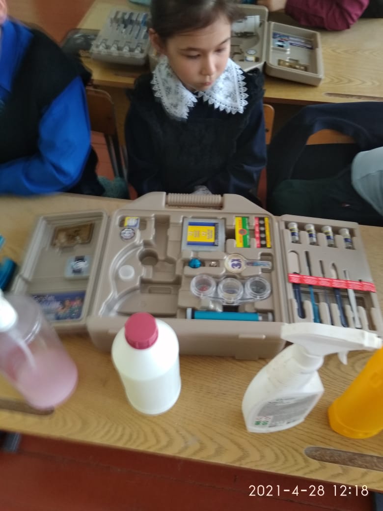Башлангыч сыйныф укытучысы һәм ресурс үзәге җитәкчесе Ибраһимова Ф.ф. башлангыч сыйныфларда химия куркынычсызлыгы көненә багышланган "табигатьне бергә саклыйк" дигән темага дәрес үткәрде. Балалар зур кызыксыну белән яшь химик җыелмаларын өйрәнделәр, беренче тапкыр микроскопны күрделәр, аның белән мөрәҗәгать итәргә өйрәнделәр.