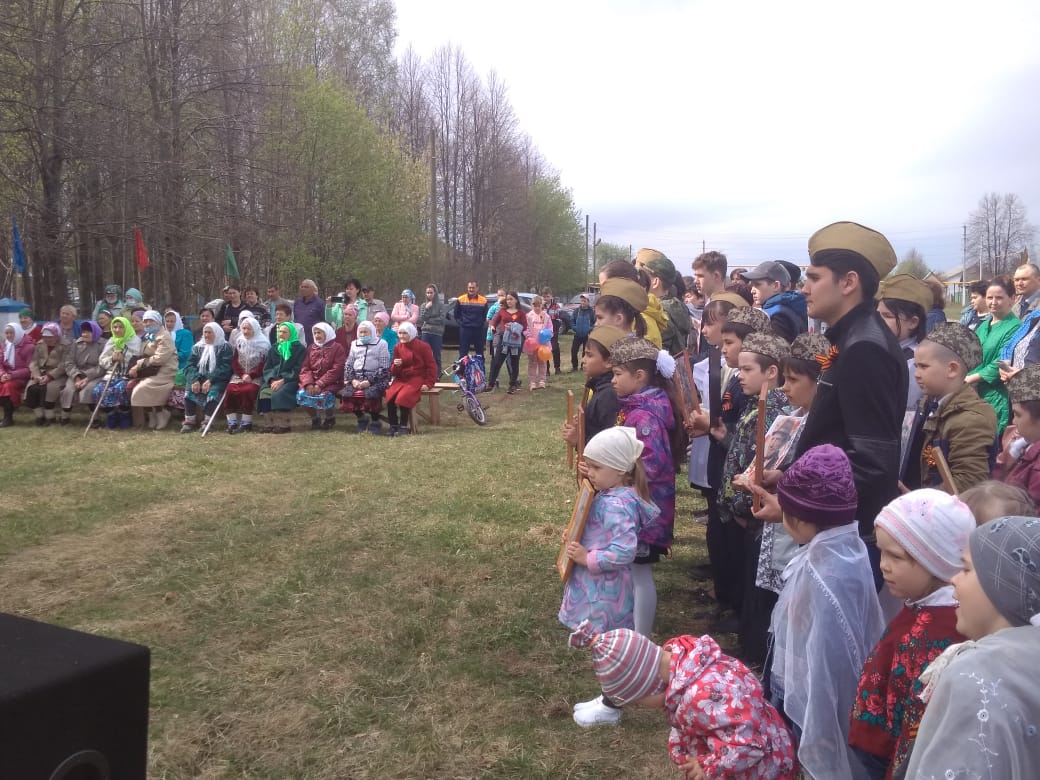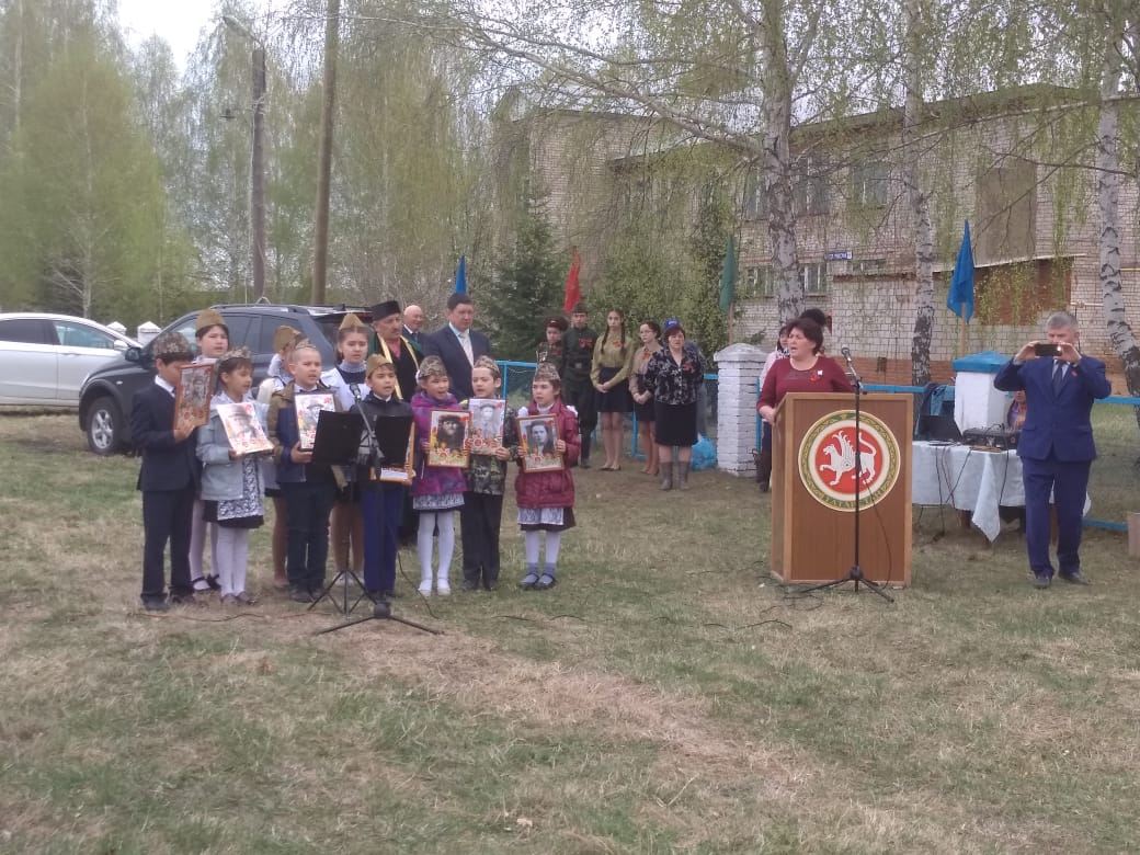 Обучающиеся дошкольной группы, ученики школы, учителя и сотрудники школы приняли частие в мининге, посвященном 76-леию Великой Победы. Учащиеся прошли с фотографиями фронтовиков, ученики 1-4 классов исполнили песню, дошкольная группа - танец птиц. Учащиеся 8-10 классов стояли на посту Почетного караула у Вечного огня./Мәктәпкәчә төркем укучылары, мәктәп укучылары, укытучылар һәм мәктәп хезмәткәрләре Бөек Җиңүнең 76 еллыгына багышланган митингта катнаштылар. Укучылар фронтовикларның фотосурәтләре белән уздылар, 1-4 сыйныф укучылары җырлар башкардылар, мәктәпкәчә төркем - кошлар биюен башкардылар. 8-10 сыйныф укучылары Мәңгелек ут янында мактаулы каравыл постында тордылар.