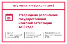 Министерство юстиции Российской Федерации зарегистрировало приказы Минобрнауки России, утверждающие расписание проведения единого государственного экзамена (ЕГЭ), государственного выпускного экзамена (ГВЭ) и основного государственного экзамена (ОГЭ) в 2018 году.