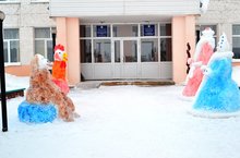 Сегодня около нашей школы вырос маленький снежный городок, созданный руками наших учителей и техработников.