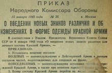 6 января 1943 года в Рабоче-Крестьянской Красной Армии были введены погоны.