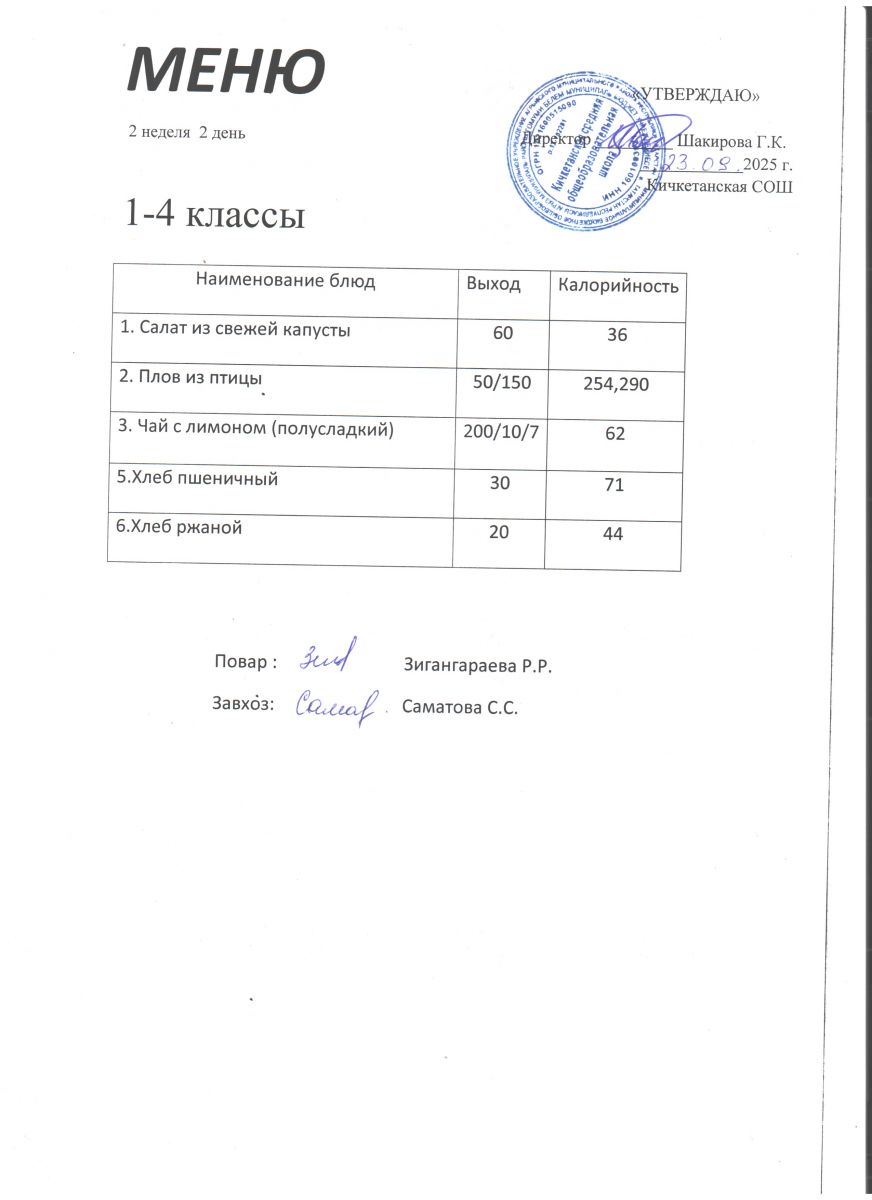 Примерное двухнедельное меню СВО и ОВЗ 2025-