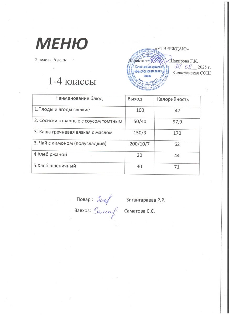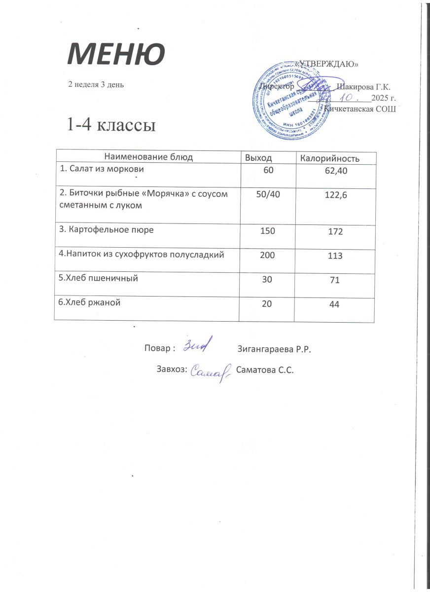 Примерное двухнедельное меню 11-18 лет 2025-2026