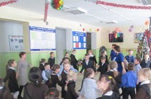 Учащихся 7-11 классов ведущие пригласили в путешествие по разным странам и познакомили с нвогодними традициями этих стран.В ходе путешествия ребята предоставили инсценировки переделанных сказок,поучаствовали в увлекательных конкурсах,в музыкальных сюрпризах, в шутливой лотерее,поэтому скучать никому не пришлось!
