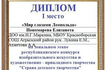 В данном конкурсе за свою работу "Мир глазами Леопольда"в номинации " На крыльях вдохновения" Пономарева Елизавета получила 1 место.Поздравляем !!!