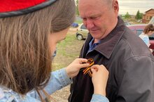 Юнармейский отряд «Каскад» в преддверии Дня Великой Победы присоединился к акции. Ребята 4 мая вышли на улицы нашего села и прикрепили атрибут