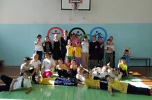 Перед началом спортивного мероприятия команды вышли на построение. На старт вышли 3 команды: 5 класс - «Лидер»; 6 класс- «Форсаж» и команда 7 класса-«Россияне»