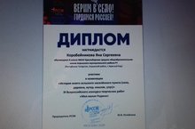 Ученица 8 класса Красноборской школы Коробейникова Яна приняла участие в IX Всероссийском конкурсе творческих работ "Моя малая Родина! в номинации "История моего сельского населенного пункта" и получила диплом. Поздравляем Яну.