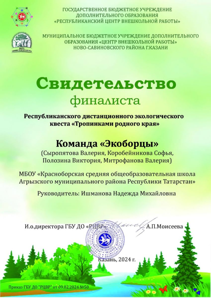 Муниципальное бюджетное общеобразовательное учреждение Красноборская средняя общеобразовательная школа Агрызского муниципального района Республики Татарстан