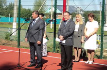 Далее торжественная линейка приобрела более спортивный характер, так как состоялась церемония открытия новой спортивной площадки.