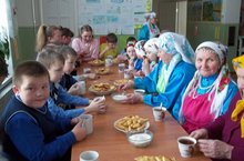 На праздник мамы и бабушки принесли удмуртские национальные блюда. Все участники мероприятия, в том числе и бабушки, пришли в национальных костюмах.