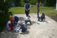 12 июня провели занятия по изучению символики России. Затем провели конкурс рисунков на асфальте по теме "Вперед Россия".
