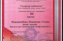 Яр Чаллы шәһәрендә узган "Гасырлар кайтавазы" исемле ачык регионкүләм эзләнү эшләре бәйгесендә "Онытырга хакыбыз юк" номинациясендә укучыларыбыз Нәҗмиев Нияз һәм Нәҗмиева Гөлназ III дәрәҗә дипломга лаек булдылар. Җитәкчеләре: Касимова В.Н., Лотфуллина И.З. Котлыйбыз сезне!