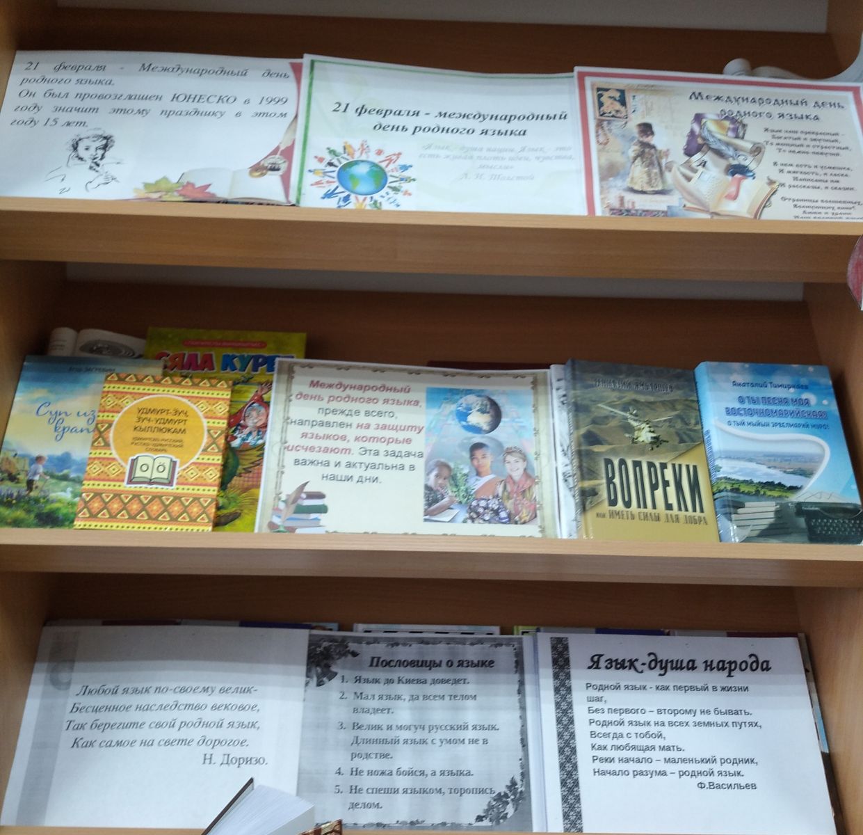 Международный день родного языка отмечается ежегодно 21 февраля. Язык - это такой символ культуры, который ничем не заменить. Это богатство. И чем больше языков знает человек, тем он духовно богаче! А для этого нам нужно уметь искать, собирать знания по крупицам и быть упорными в приобретении знаний. Уважение и признание всех языков является одним из основных условий сохранения мира на планете. В рамках празднования Международного дня родного языка в библиотеке была подготовлена книжная выставка «Люби и знай родной язык».
